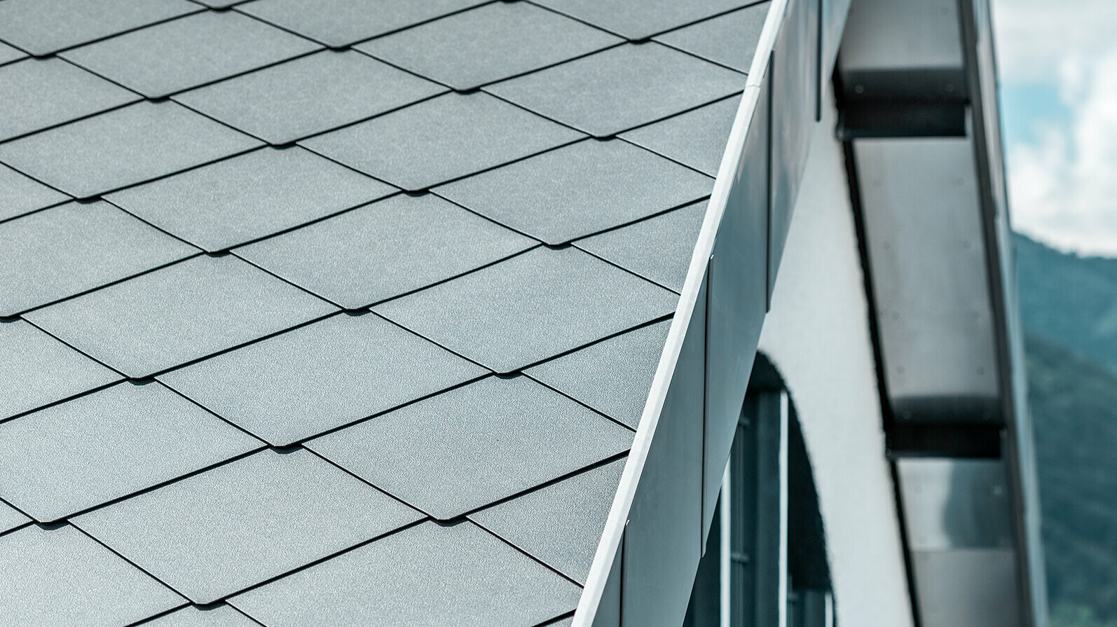 Un complexe sportif à Prilly, en Suisse a été revêtu de losanges de toiture et de façade PREFA 44x44 en P.10 gris pierre. Des panneaux solaires ont pu être installés sur la grande surface offerte par la toiture.