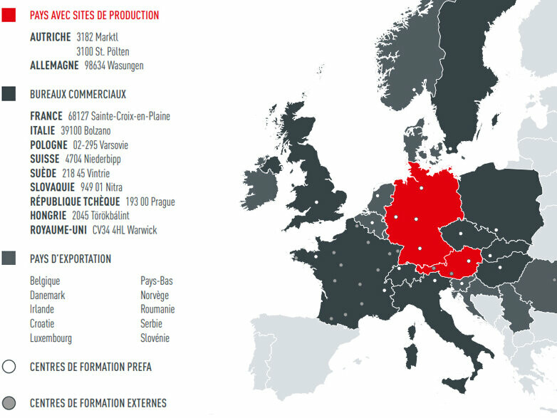 La société PREFA Aluminiumprodukte GmbH est spécialisée depuis plus de 80 ans dans le développement, la production et la commercialisation d'accessoires pour toitures, solaire et façades en aluminium dans toute l’Europe. Au total, le groupe PREFA emploie environ 790 personnes dans 19 pays. La production de plus de 5.000 produits de qualité est exclusivement réalisée en Autriche et en Allemagne. Chaque année, 4.850 partenaires de pose sont formés dans 32 centres de formation en Europe. L’entreprise traditionnelle fait partie du groupe industriel Dr. Cornelius Grupp, qui emploie plus de 9.000 personnes dans le monde entier sur plus de 40 sites de production.