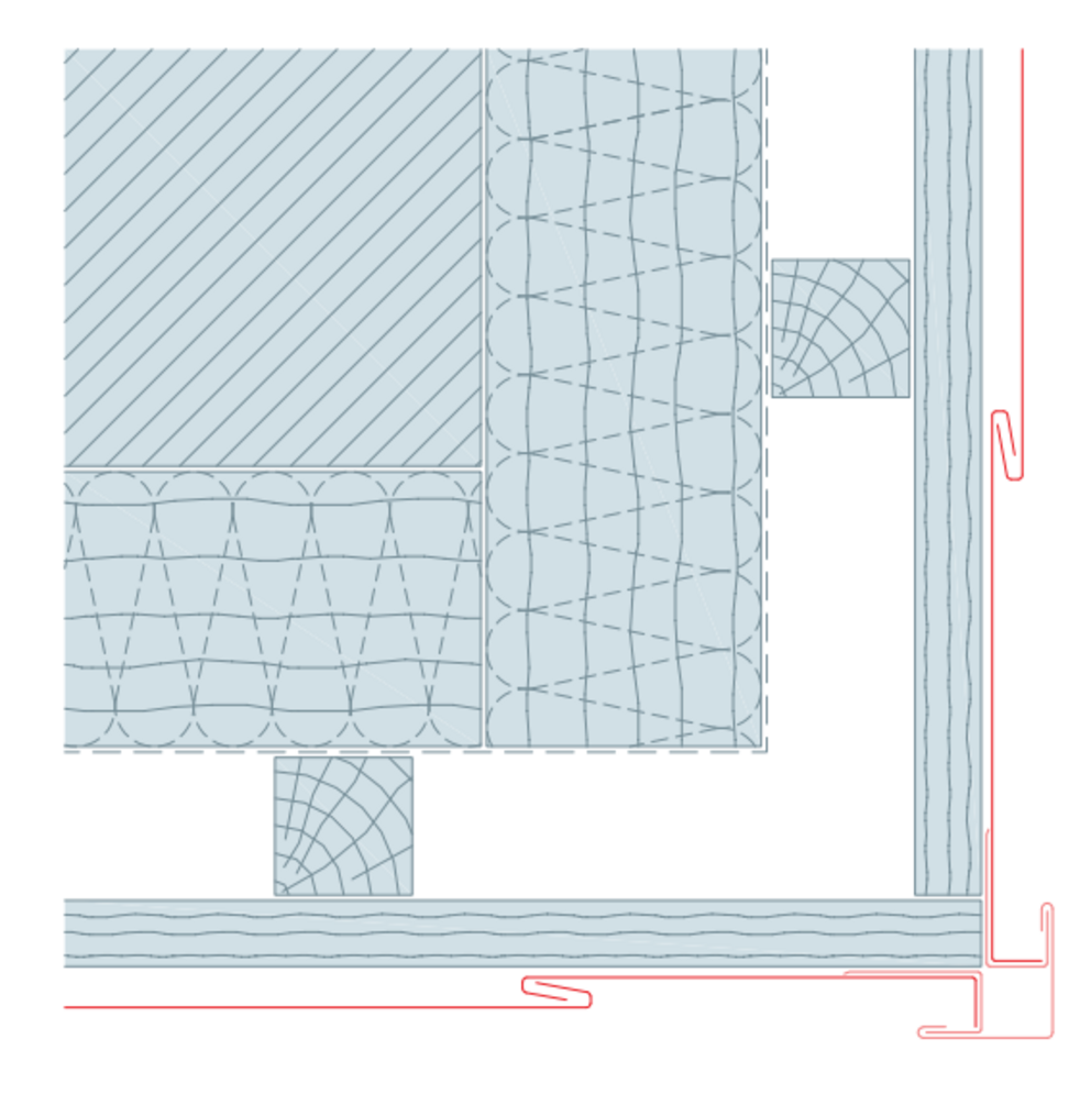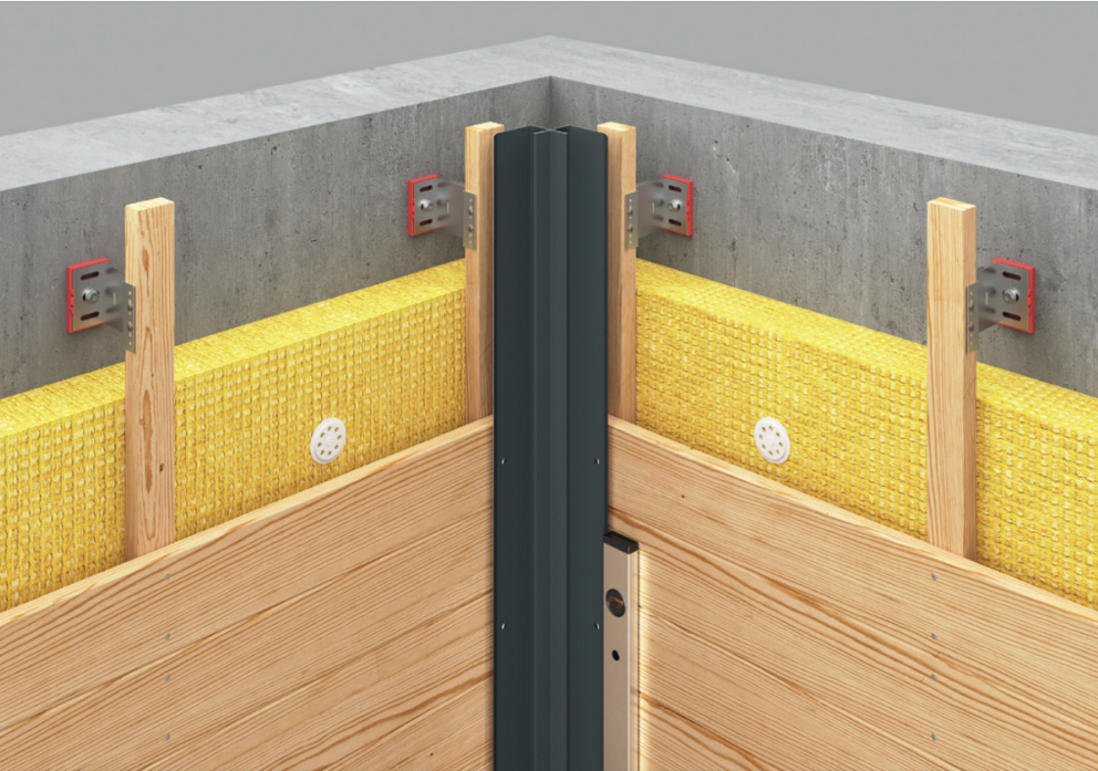 Les angles sortants et entrants sont généralement réalisés avec deux profils d'accrochage et une équerre d’angle. Veillez à effectuer un montage parfaitement vertical des profils d'accrochage, en tenant compte de la dilatation, et à bien répartir les points fixes et points coulissants.