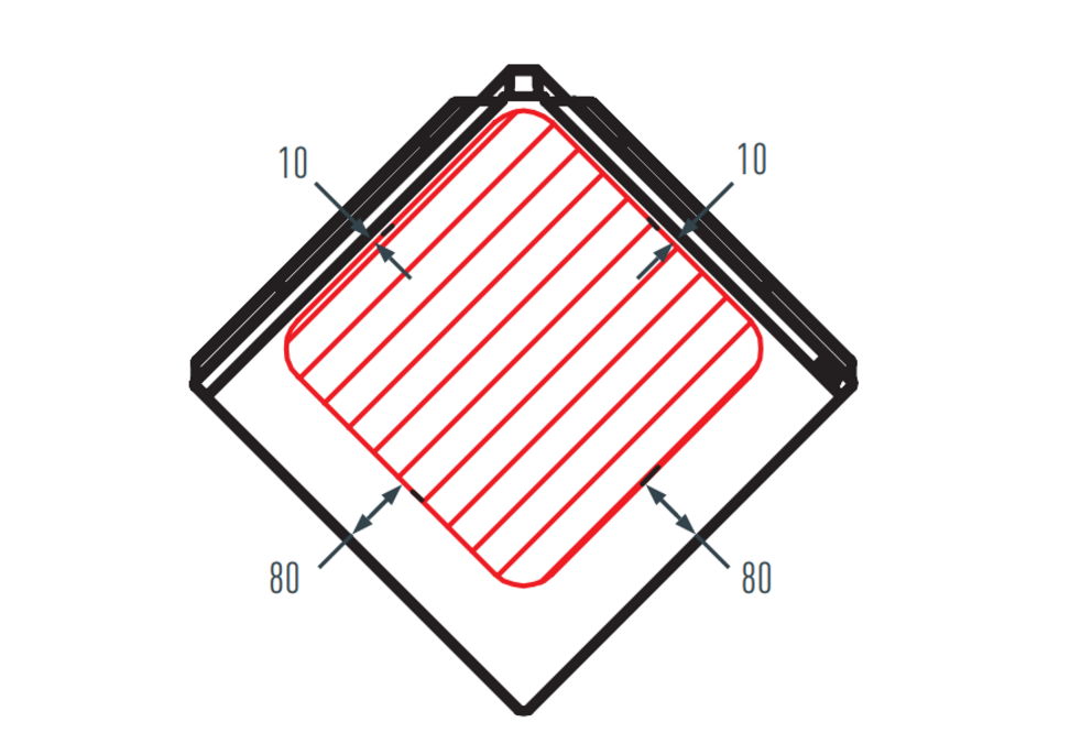 Si vous installez quelque chose sur la façade (comme des lampes), respectez la zone de pose autorisée des losanges de façade 44 x 44 pendant l’installation. S’il n’est pas possible de respecter la zone de montage, il faut agrafer une plaque de support.