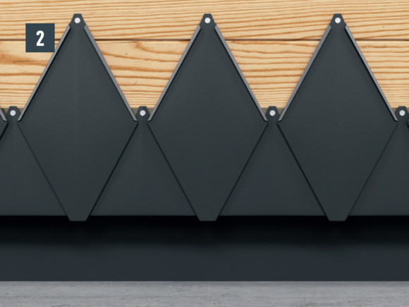 Chaque petit losange est fixé directement par un clou annelé 2,8/25 fourni et inséré dans le trou de montage pré-percé.