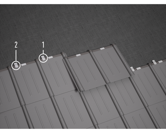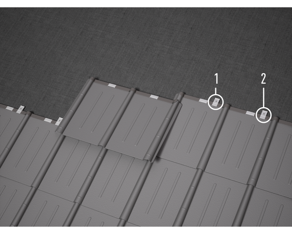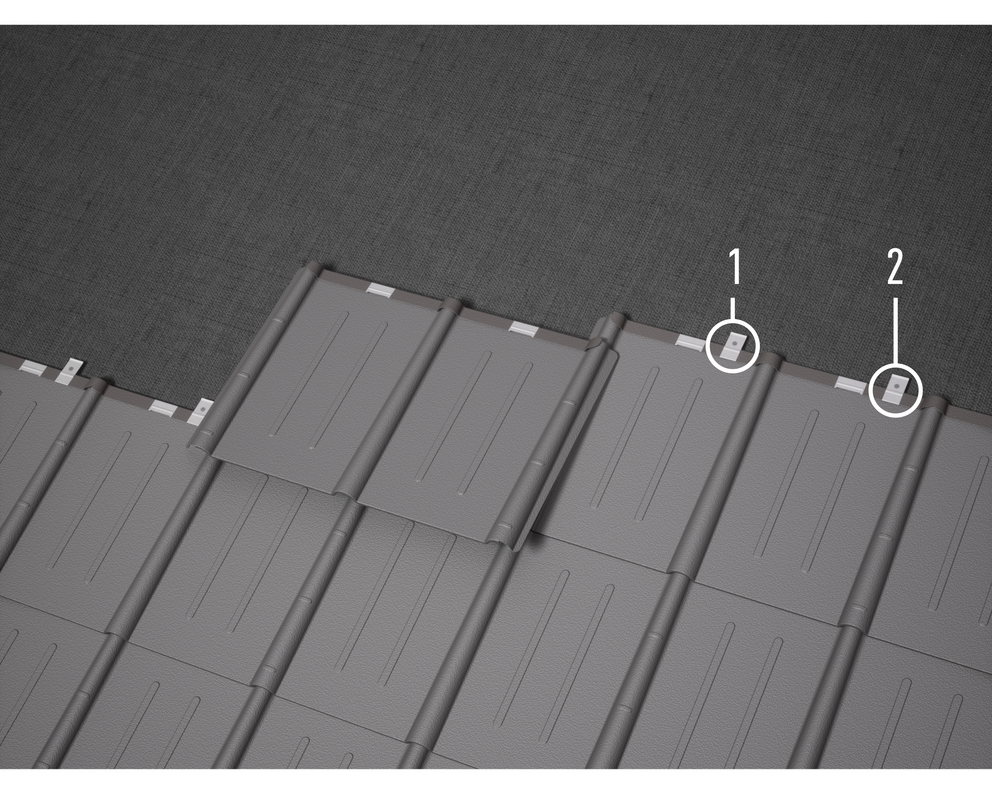 La disposition des pattes dépend du sens de couverture. Les pattes brevetées sont dotées d’une amorce supplémentaire. Cette amorce facilite le clouage lorsqu’il n’est pas possible d’utiliser le trou prévu à cet effet (par ex. à cause d’un nœud, d’une fente dans le voligeage).