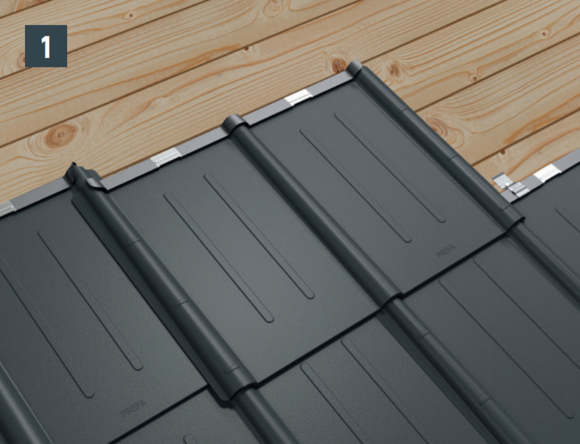 Avec les tuiles, la pose est possible dans les deux sens. Les tuiles sont toujours posées en quinconce, c’est-à-dire à joints décalés. Les demi-tuiles et les chatières peuvent aussi être posées joint sur joint (Fig. 1).