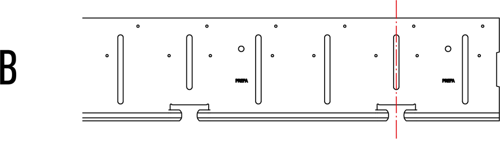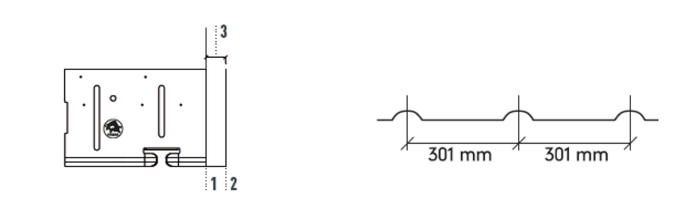 Le traçage initial débute au milieu de la surface de la façade, une extrémité latérale ou un angle du bâtiment. Le positionnement de base de la bande de départ dépend de la répartition des tuiles indiquée. Le trait d’angle vertical est positionné soit au milieu d’une rainure, soit au milieu entre deux rainures, et la marque de cordeau horizontale se situe toujours à 419 mm du bord supérieur de la tuile. L’espacement entre les marques de cordeau à réaliser à la verticale doit être un multiple de 301 mm.
