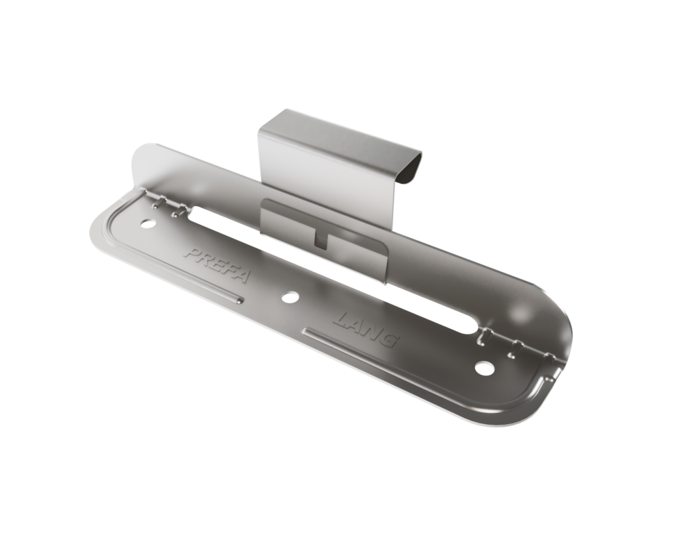 Les pattes fixes et les pattes coulissantes PREFA Niro conviennent uniquement pour les surfaces planes et fixes, et seulement pour des agrafes d’une hauteur de 25 mm !