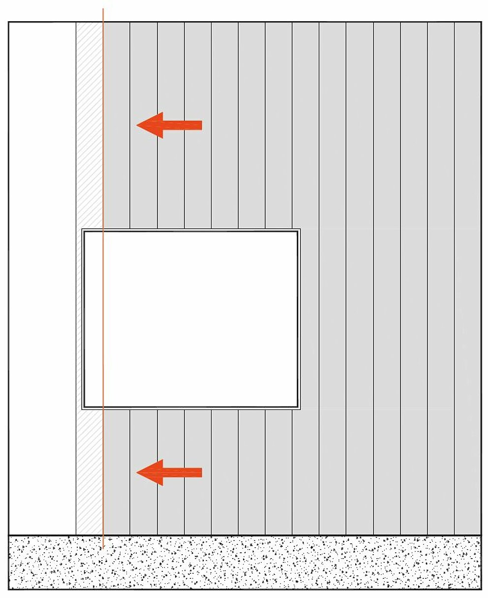 Il est judicieux de réaliser un traçage de la largeur utile du Siding autour de la fenêtre, aussi bien pour une pose verticale qu’horizontale, afin de ne pas risquer de sortir de l’alignement.