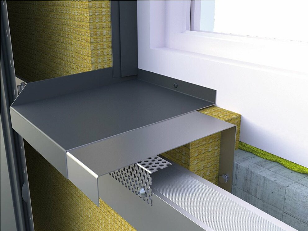 Dans un premier temps, au niveau de l’entourage de la fenêtre, il faut monter une tôle perforée et une bande de maintien. Assurez-vous que l’ouverture d’évacuation d’air de la lame d’air ventilée n’est pas obstruée.
