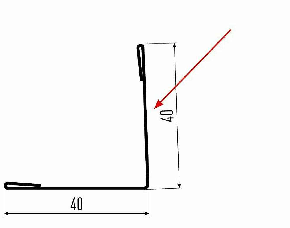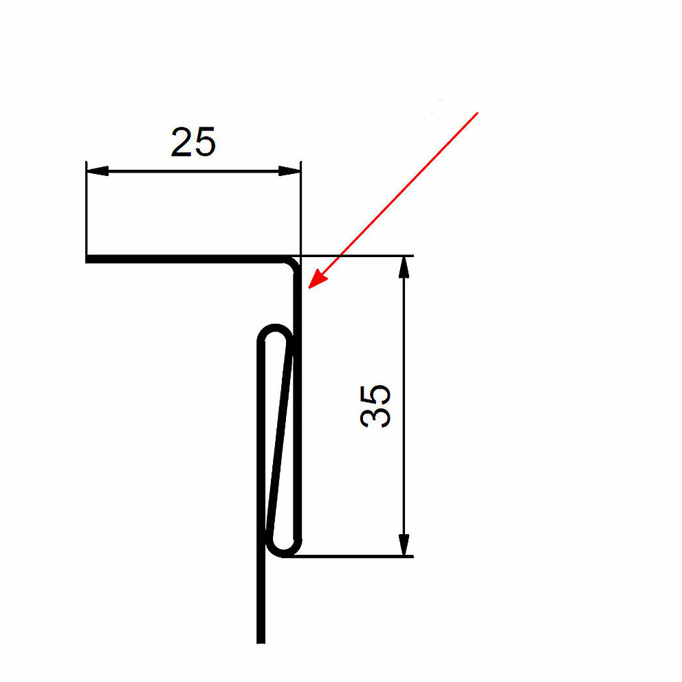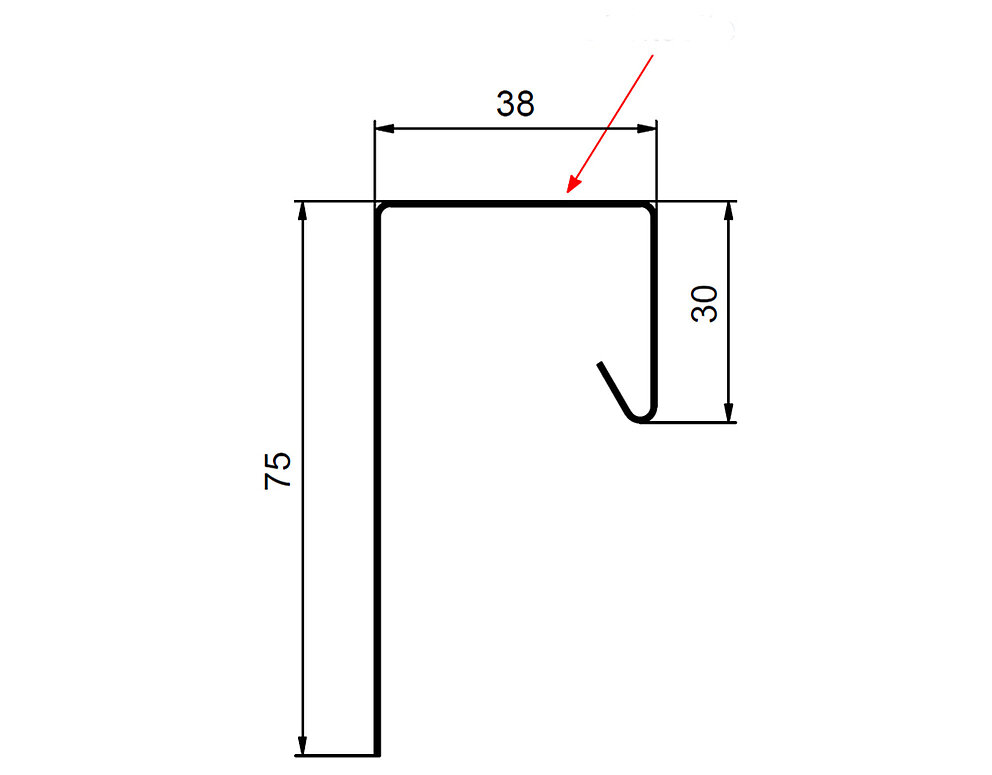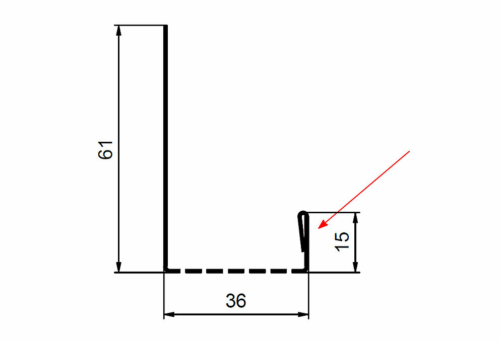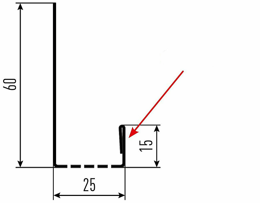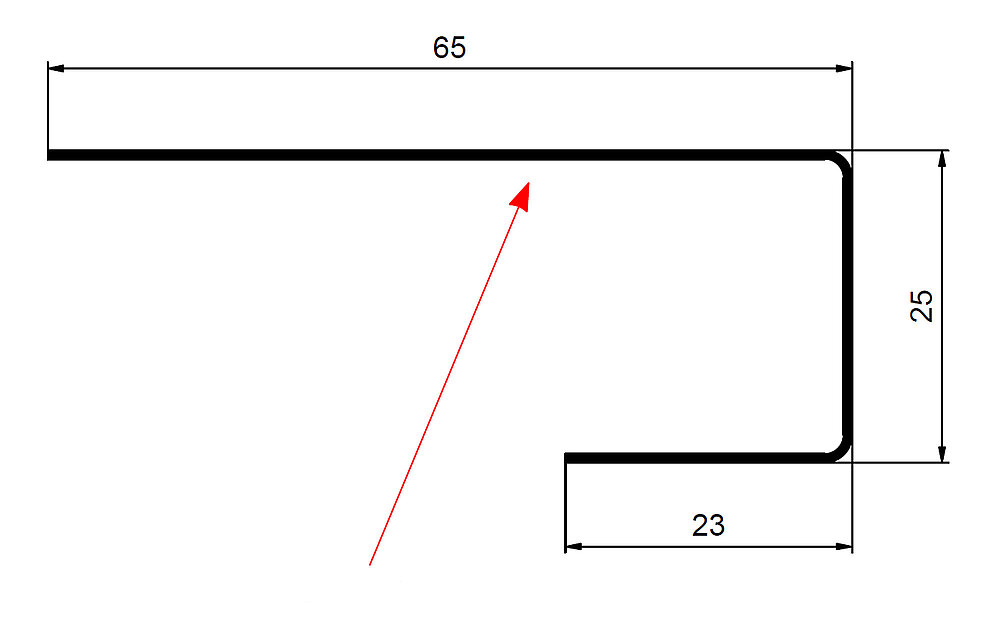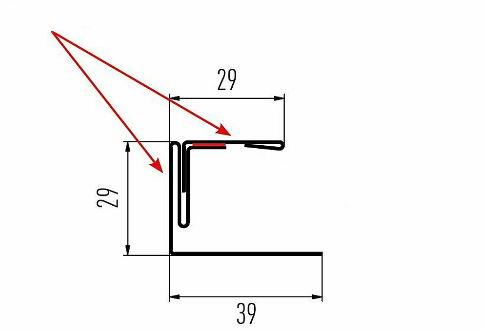 La flèche rouge indique toujours le côté prélaqué des profils accessoires.