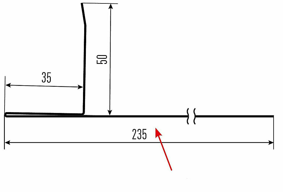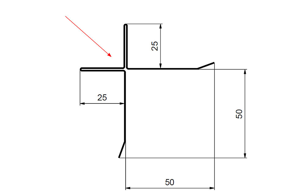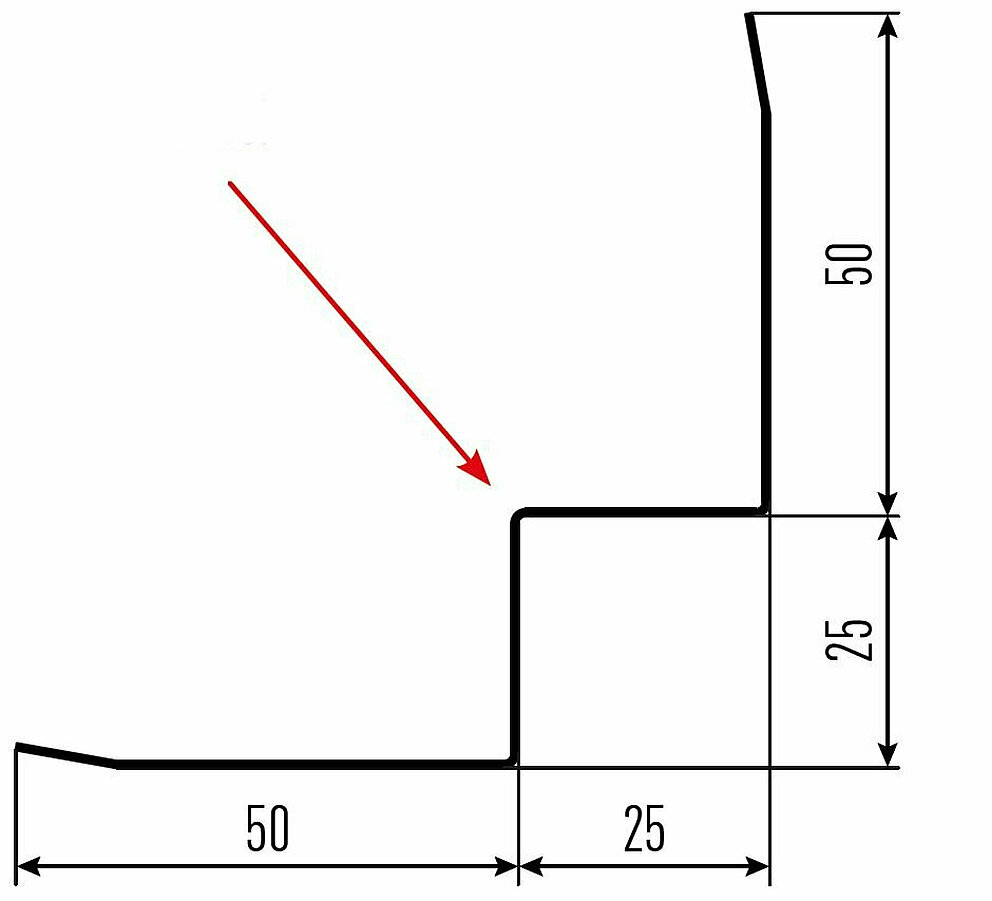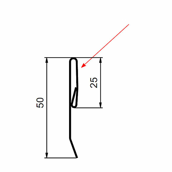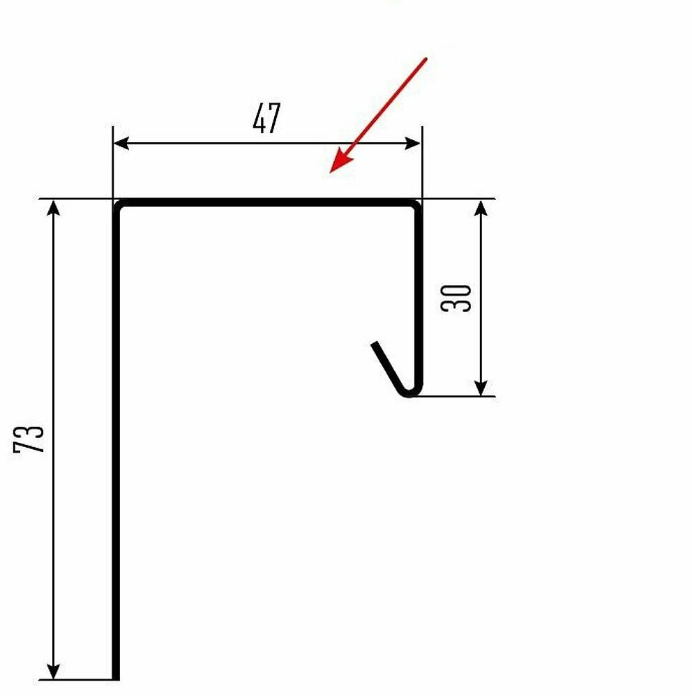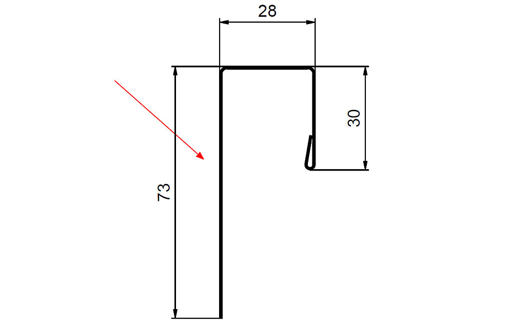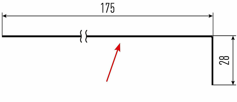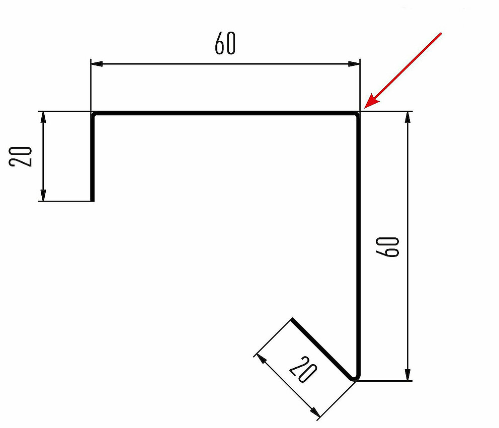 La flèche rouge indique toujours le côté prélaqué des profils accessoires.