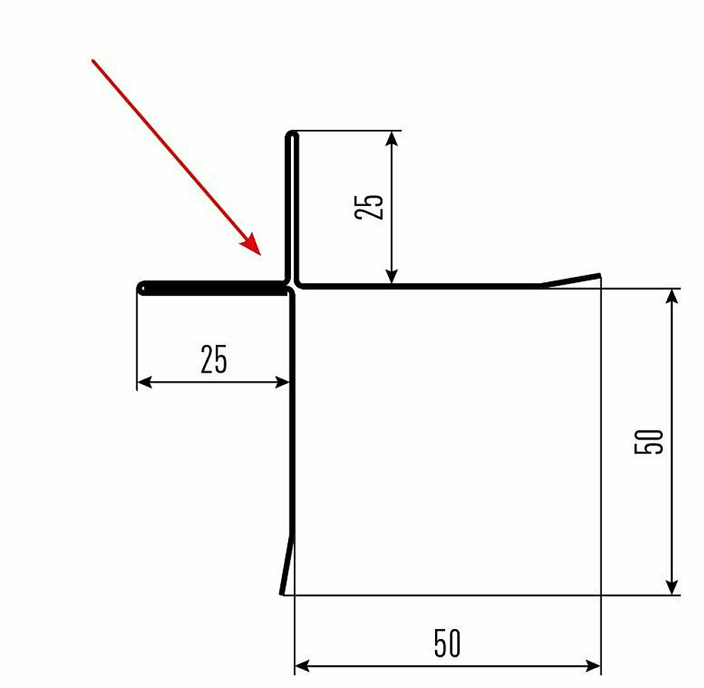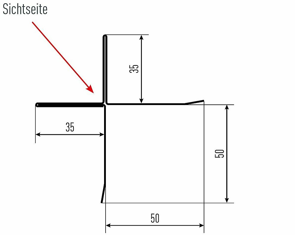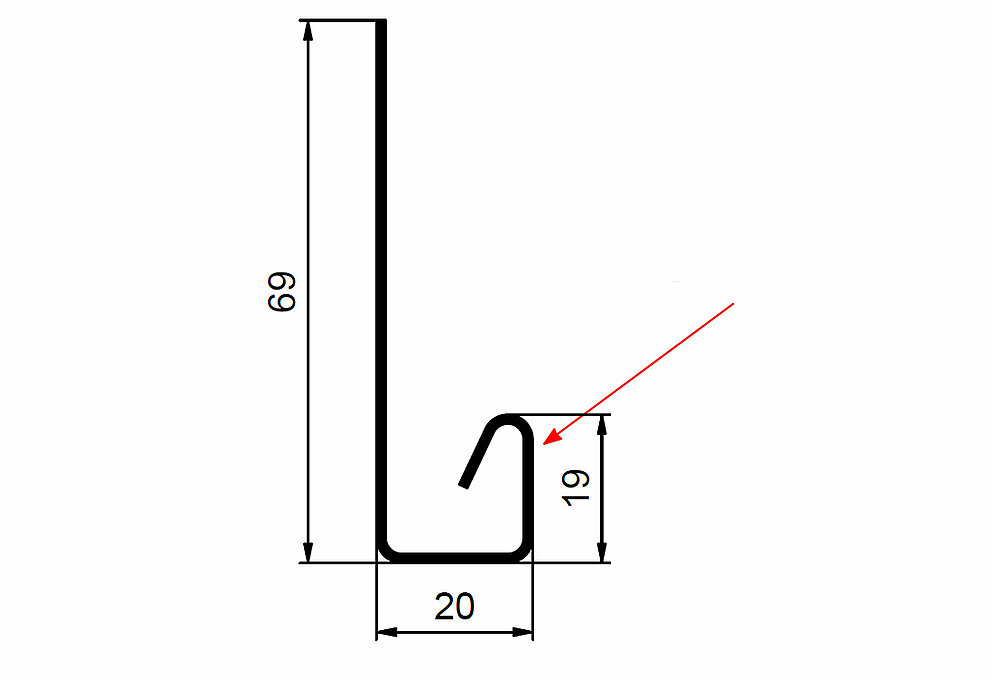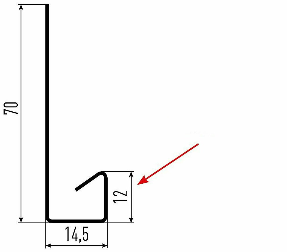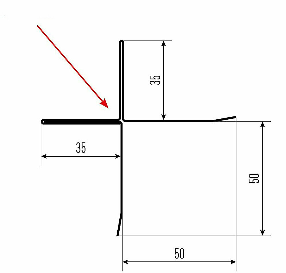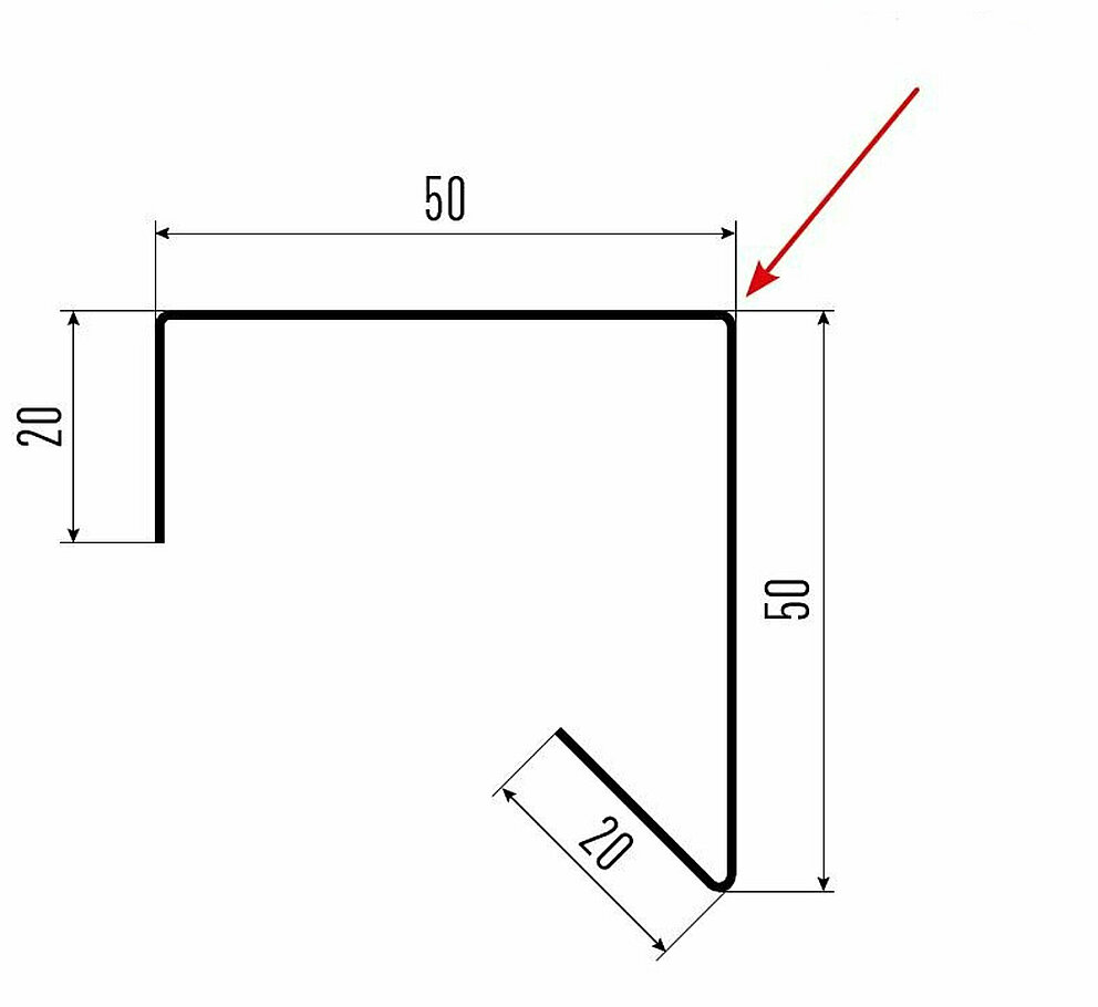 La flèche rouge indique toujours le côté prélaqué des profils accessoires.