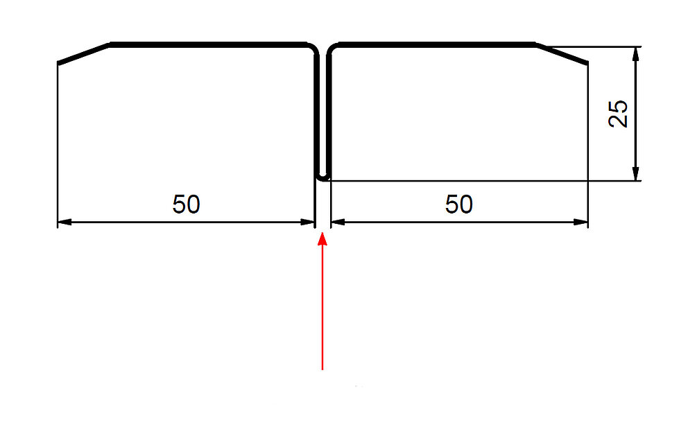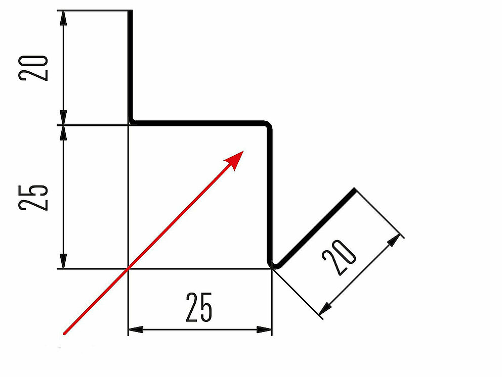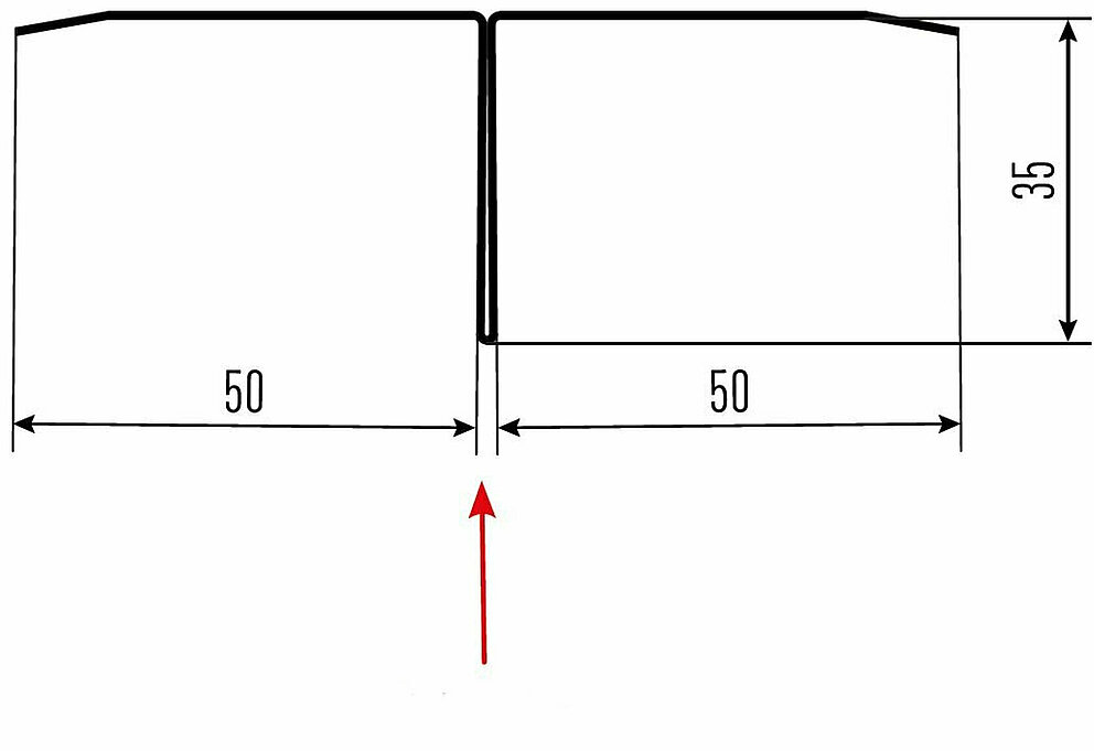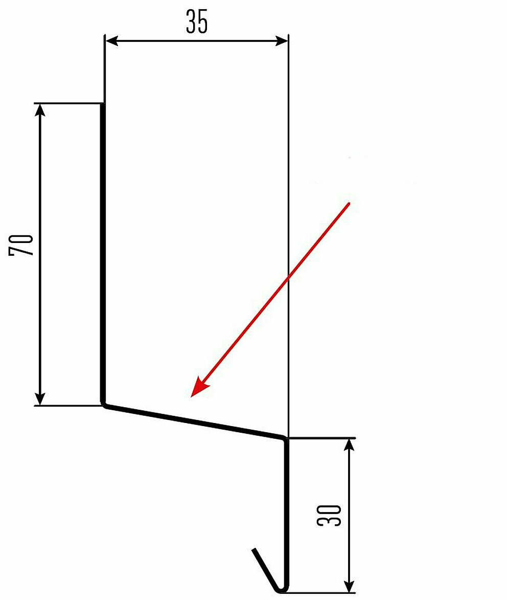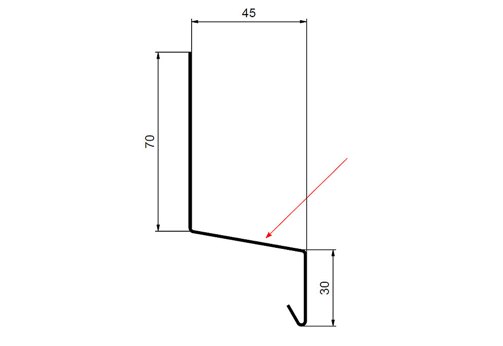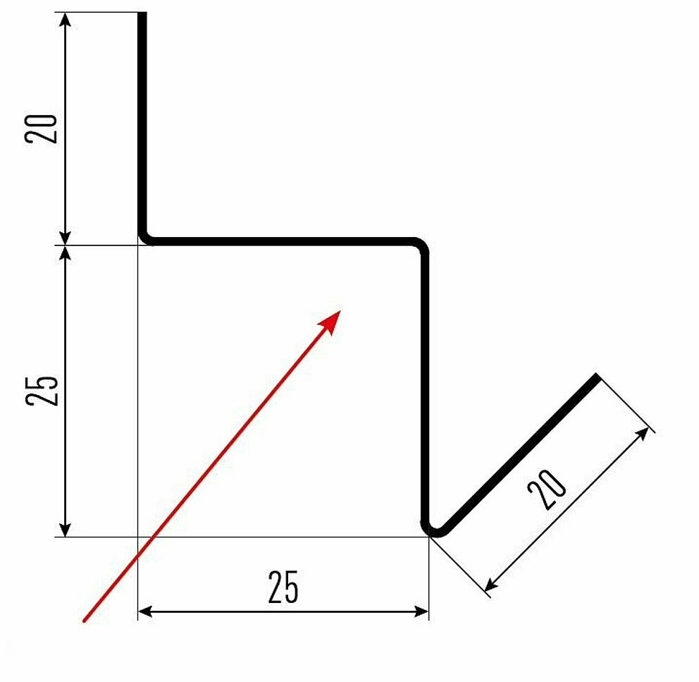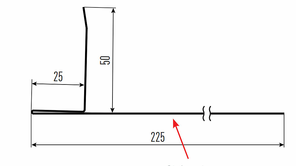La flèche rouge indique toujours le côté prélaqué des profils accessoires.