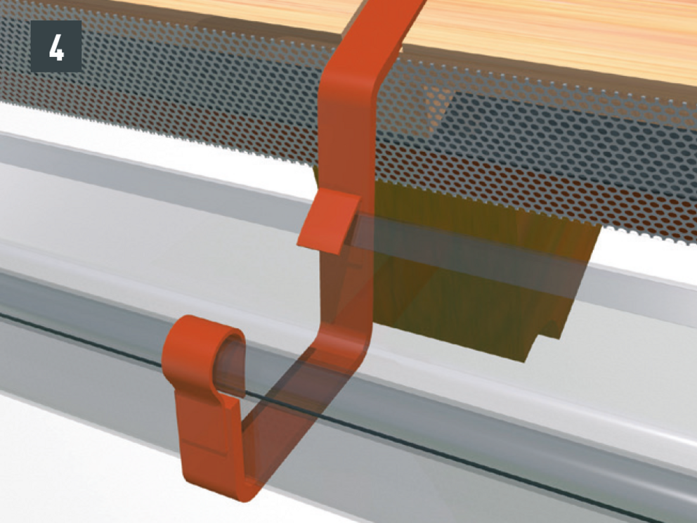 • Réalisez un évidement pour les crochets de gouttière dans la chanlatte (Fig. 3).