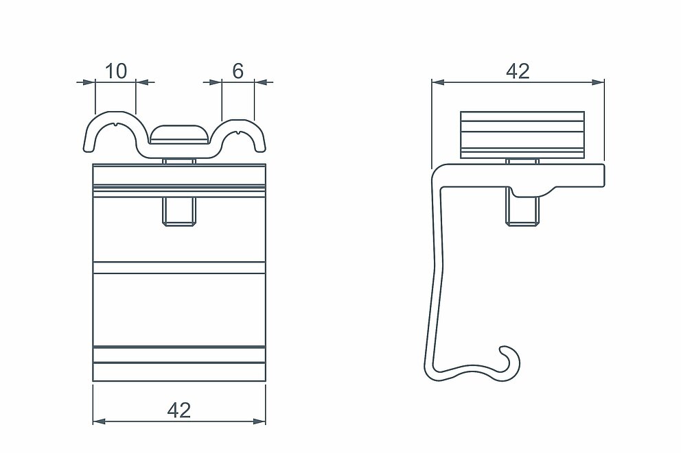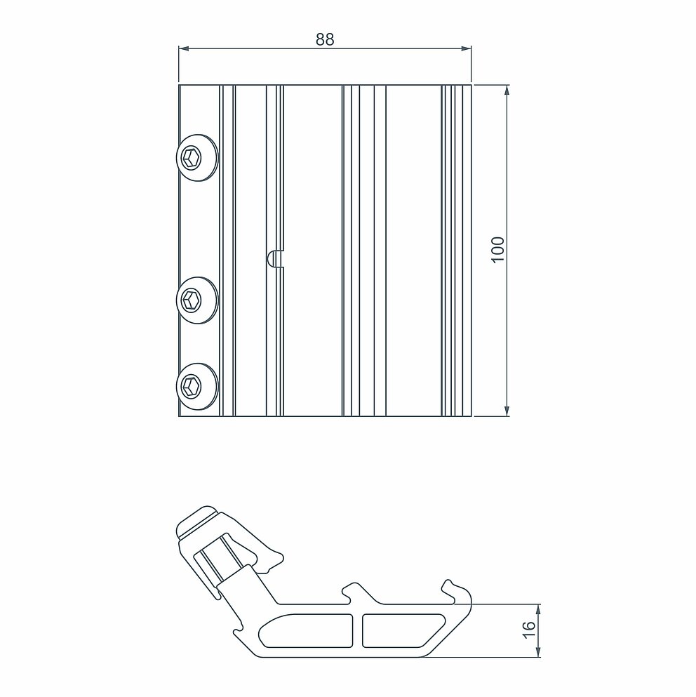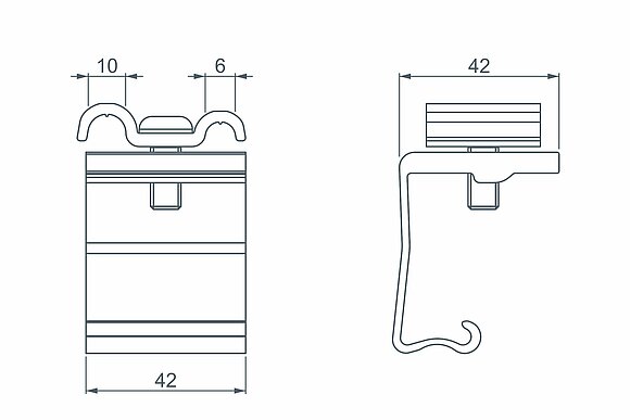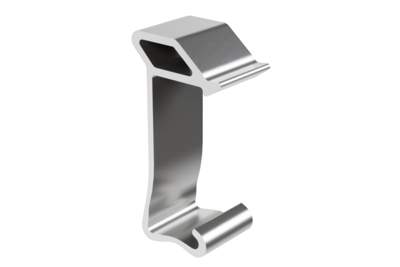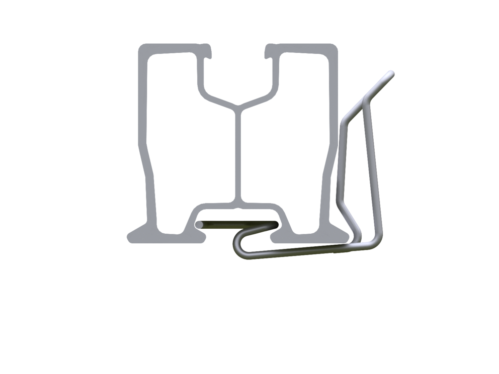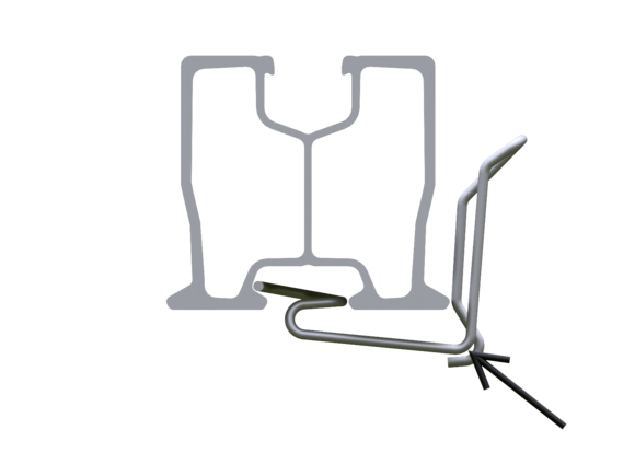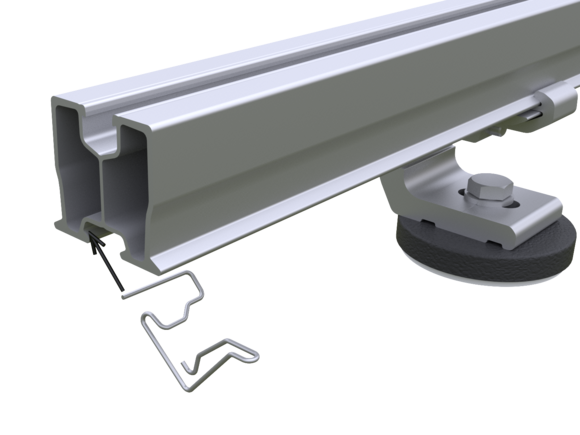 Le clip de passage de câbles est fixé en oblique par le bas à la rainure du rail et agrafé dans le rail à l’aide d’une pression inclinée vers le haut.