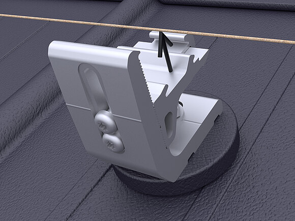 Dans la série de modules la plus basse d’une surface de générateur, deux vis de sécurité par module sont fixés sur le rail de module supérieur (situé sur le premier côté).