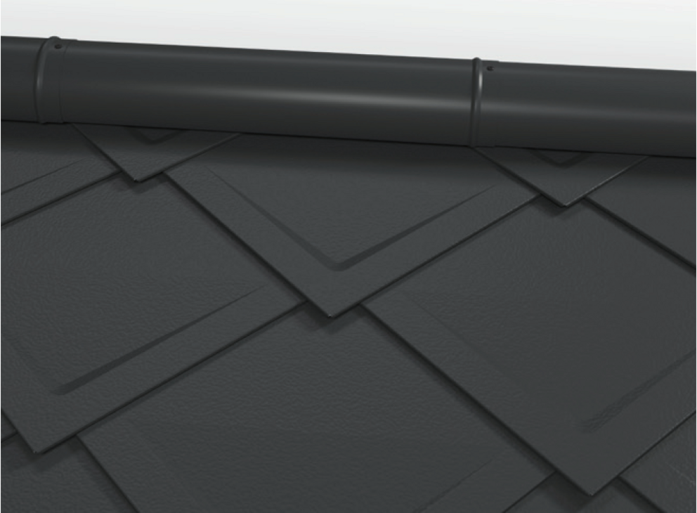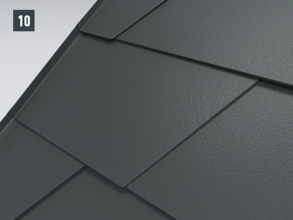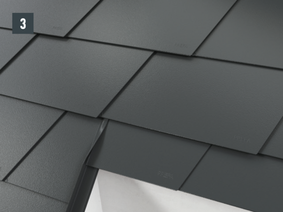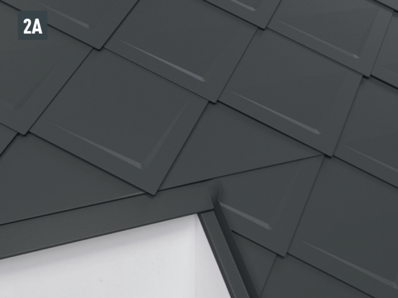 Une fois les losanges de toiture 29 x 29 préparés, il est possible de réaliser une pièce de raccordement (par ex. habillage de rive ou raccordements de couloir) et de l’intégrer dans la couverture.