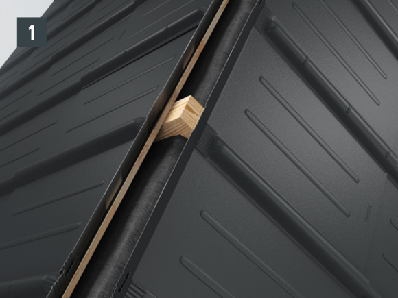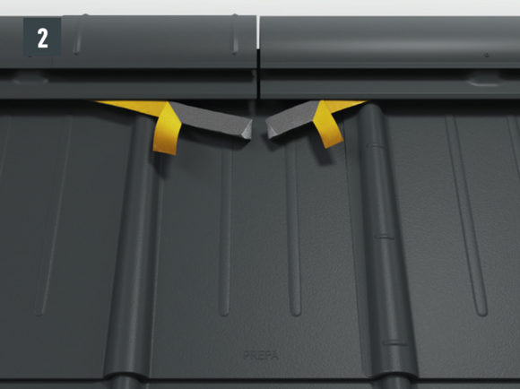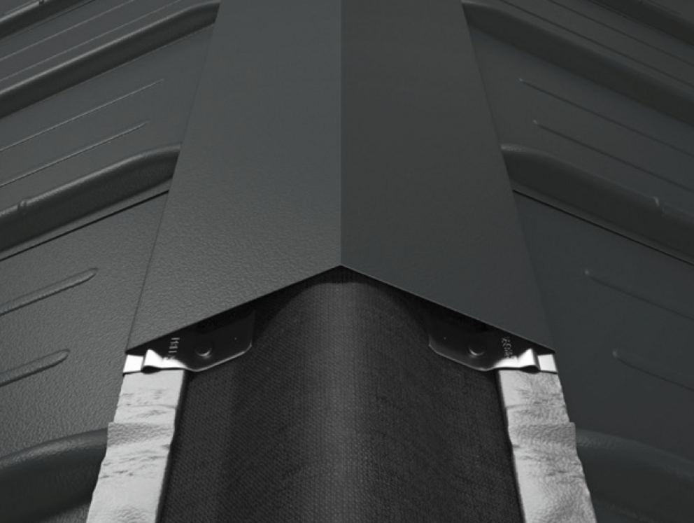Une faîtière simple peut être utilisée lorsque l’intervalle entre la couverture de toiture PREFA et le point de faîte est inférieur à 150 mm et qu’aucun système de ventilation n’est nécessaire.