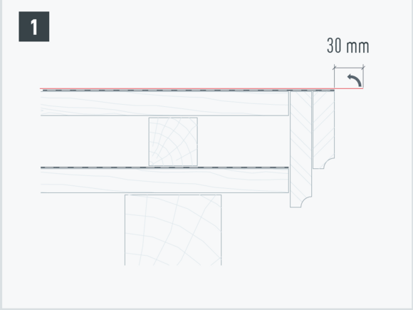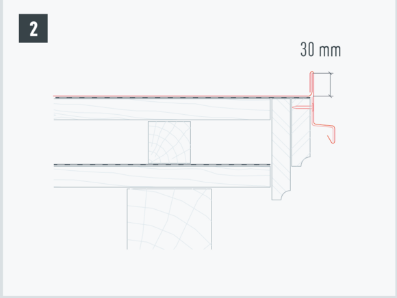 Le débord de gouttière de la bande de départ doit se trouver dans le tiers arrière de la largeur de la gouttière et ne doit pas dépasser 80 mm.