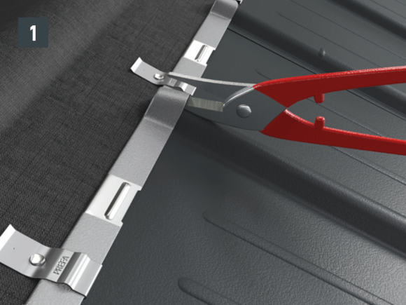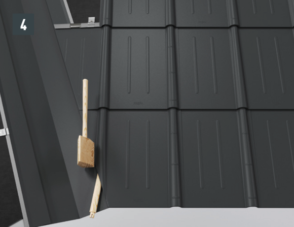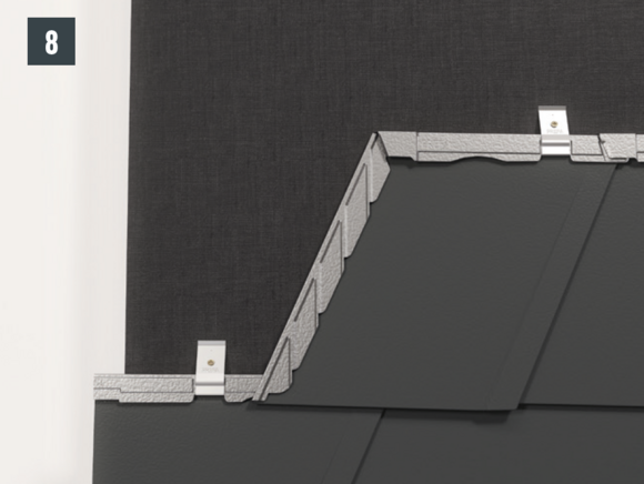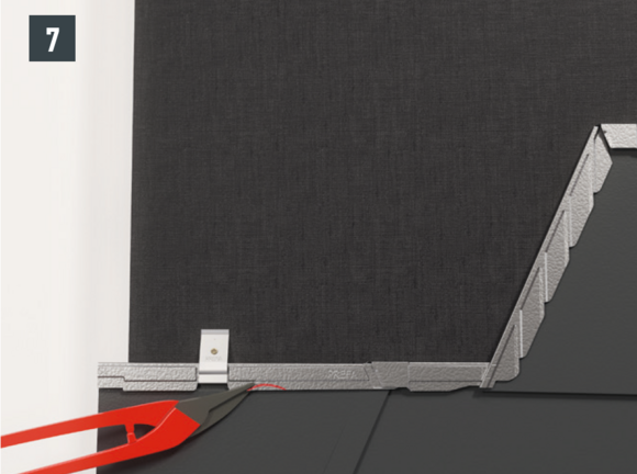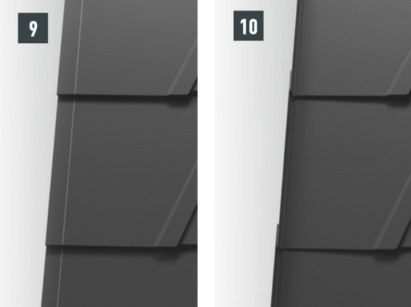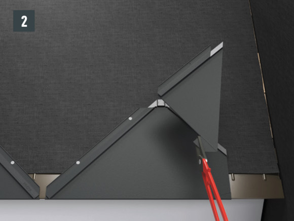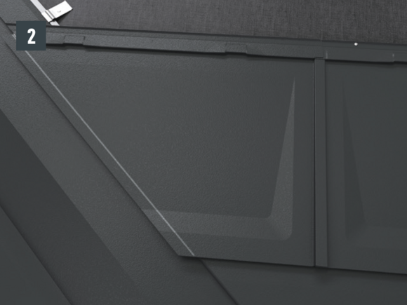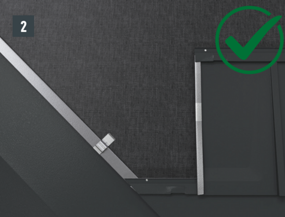 Au niveau de chaque relevé de losange de toiture 29 × 29 (bande de rive et abergement), il faut couper la pince latérale vers le bas afin d'éviter un effet de capillarité.