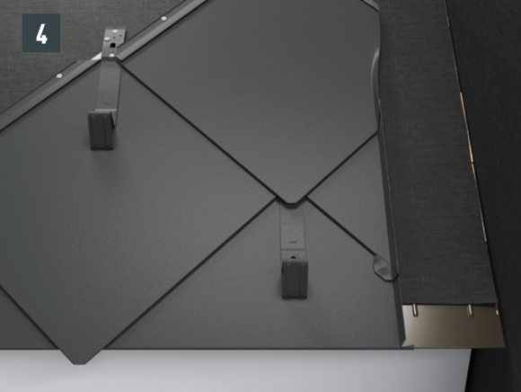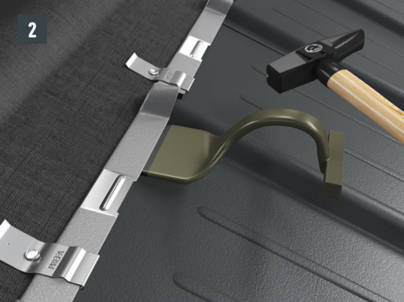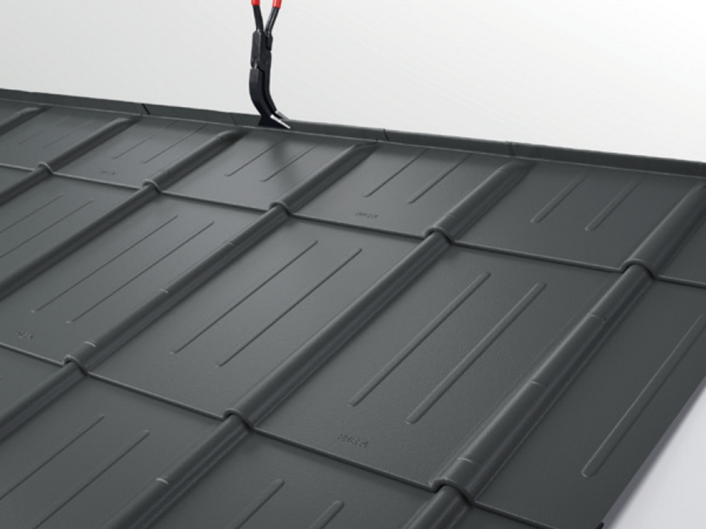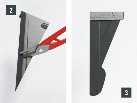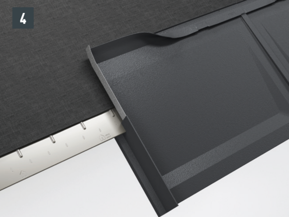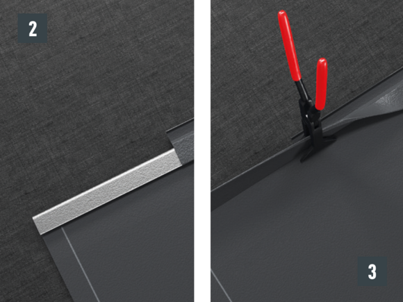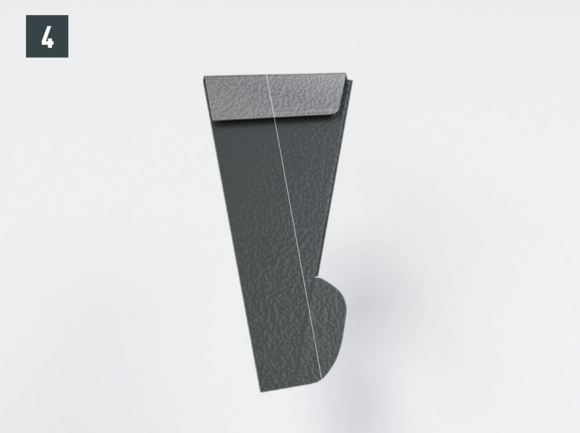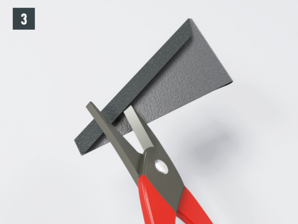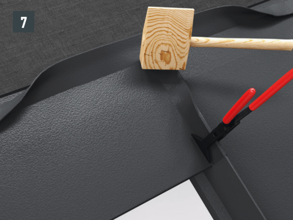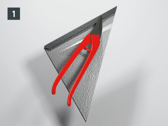 Après avoir découpé la tuile, réalisez un pli écrasé au niveau de l’onde centrale, afin de créer un accrochage par emboîtement. Le pli écrasé peut être réalisé à l’aide d’une pince plate ou d’une moulureuse.