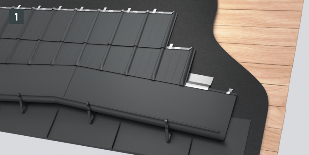 Une fois les DS.19 préparés, il est possible de réaliser une pièce de raccordement (par ex. habillage de rive ou raccordements de couloir) et de l’intégrer dans la couverture.