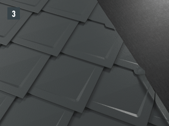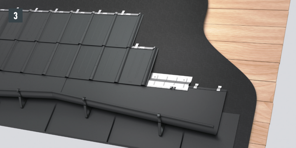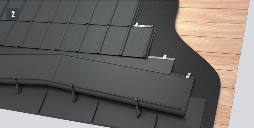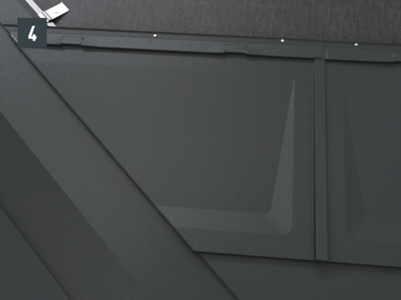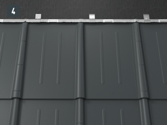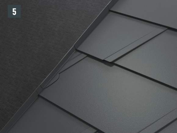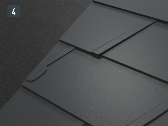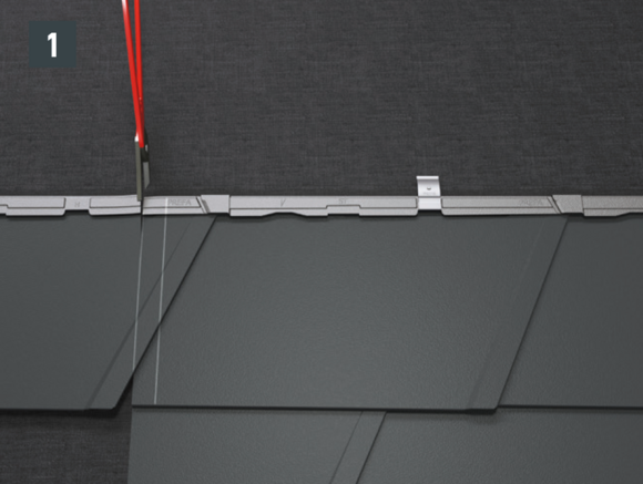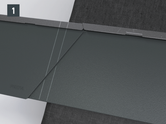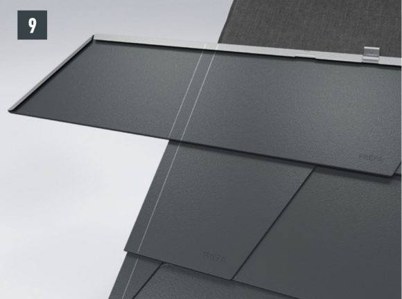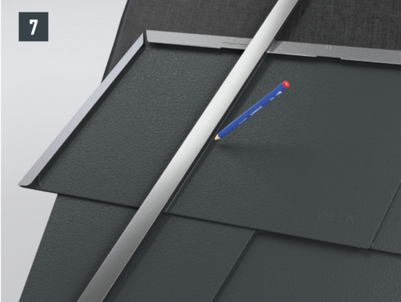 Après avoir découpé la couverture de toit PREFA, créez un accrochage par emboîtement.