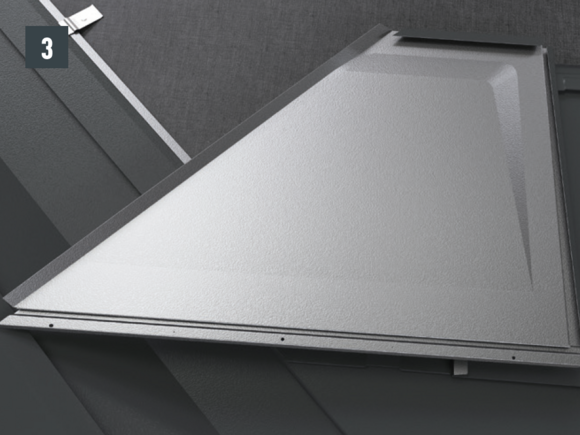 Lors de l’installation d’ouvertures d’évacuation d’air côté faîtière dans des toitures à structure monocouche, la pénétration de neige poudreuse ne peut être complètement exclue.