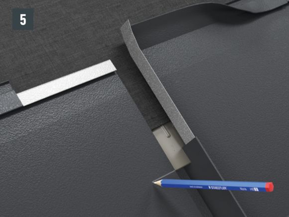 Vous devez veiller à ce que la cale en mousse autoadhésive soit placée sur toute la longueur de la couverture.