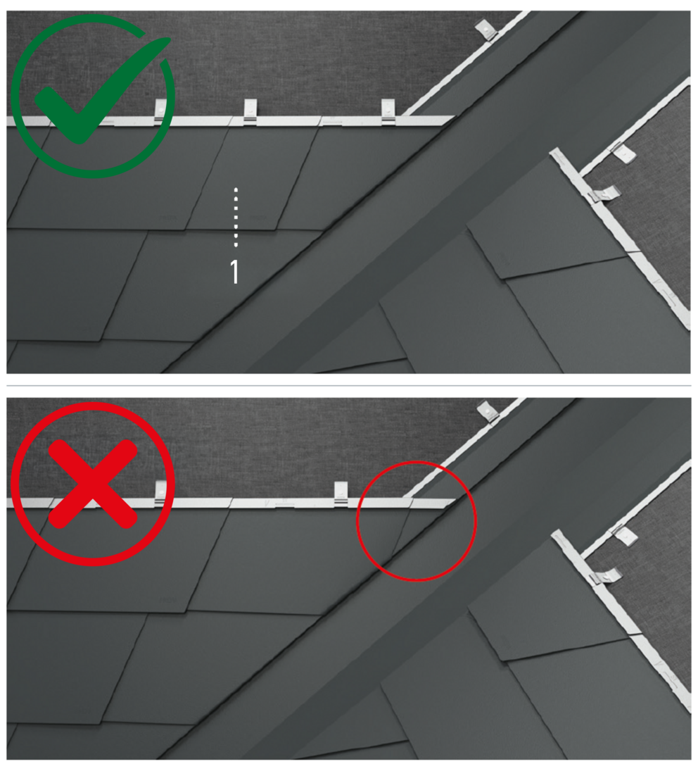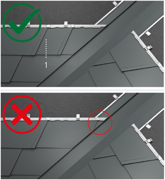 Lors de cette opération, veillez à ce que la zone pour le rebord latéral (par ex. : pour la réalisation de la rive) ne corresponde pas au centre des losanges de toiture 29 × 29 ou 44 × 44.