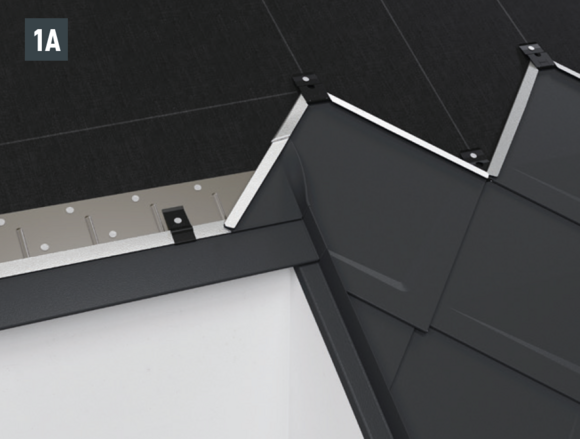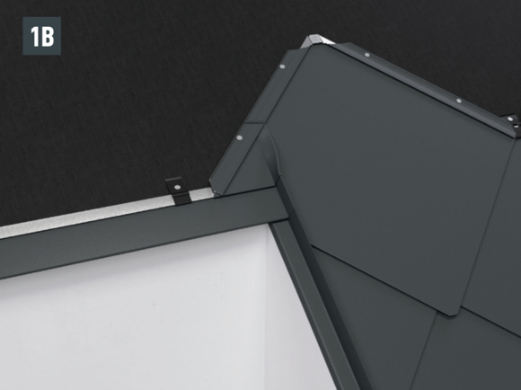 Dans la plupart des cas, pour réaliser les décrochements de toit avec des losanges de toiture 29 × 29 ou 44 × 44, l’artisan doit façonner un larmier. Cela permet de commencer la pose facilement avec une tuile de départ de losange de toiture 29 × 29 ou 44 × 44 (Fig. 1A et 1B).