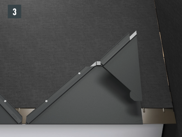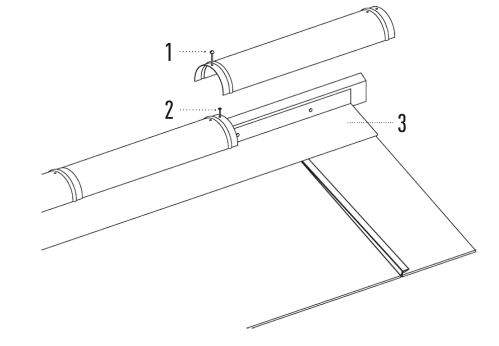 Au niveau de chaque relevé de losange de toiture 44 × 44 (bande de rive et abergement), il faut couper la pince latérale vers le bas afin d'éviter un effet de capillarité.
