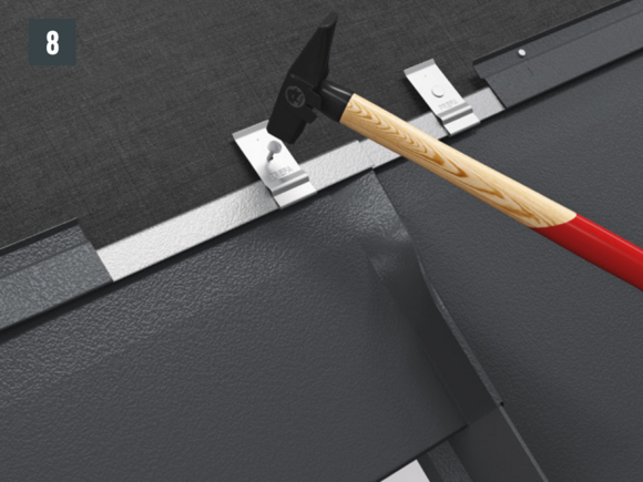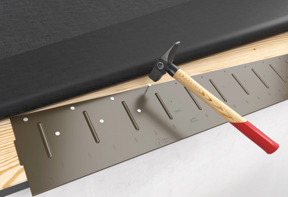 Préfixez la bande de départ sur toute la longueur avant de clouer tous les trous pré-percés avec les clous PREFA fournis.