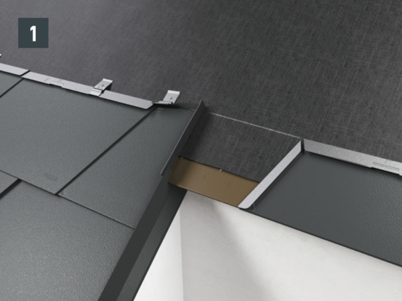 Une fois les bardeaux préparés, il est possible de réaliser la tôle de raccordement (par ex. habillage de rive ou raccordements de couloir) et de l’intégrer dans la couverture.