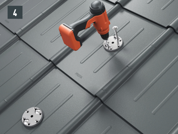 La platine ne doit pas être positionnée et fixée sur une agrafe ou sur une onde de la couverture PREFA. Il peut être nécessaire de monter une plaque de support (par ex. si une agrafe ou si une onde se trouve au niveau d’un chevron).