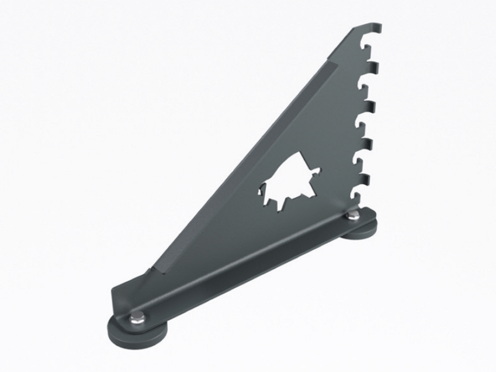 En alliage d’aluminium haute résistance avec revêtement coloré, composé de deux platines avec une garniture d’étanchéité, d’un crochet pour tubes pare-neige XL et d’une glissière de fixation, matériel de fixation inclus. |