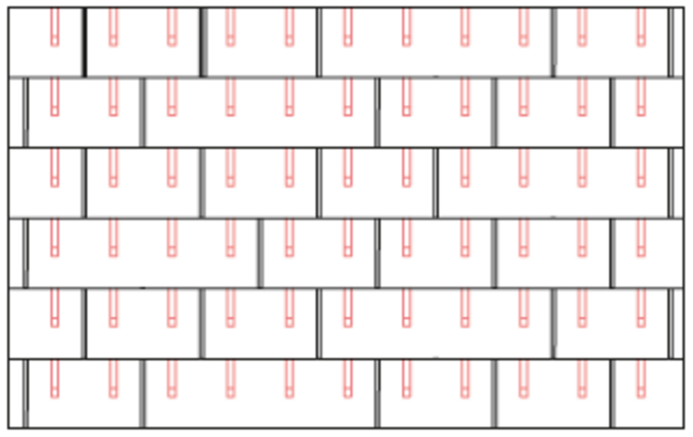 Les arrêts de neige doivent être placés selon le schéma de pose calculé, sur l’ensemble de la toiture au niveau de chaque rangée non découpée. (Sauf au niveau des accessoires et des éléments encastrés.) Dans les endroits exposés, il faut si nécessaire prévoir aussi des systèmes pare-neige. Les éléments de construction tels que les lucarnes, les cheminées, etc. doivent être pris en compte selon les normes applicables.