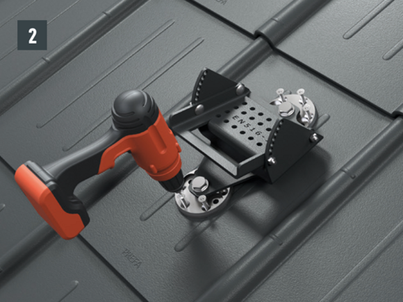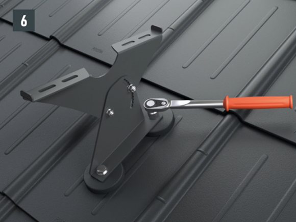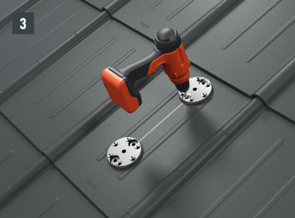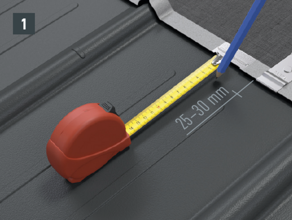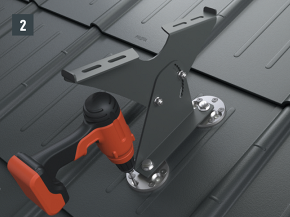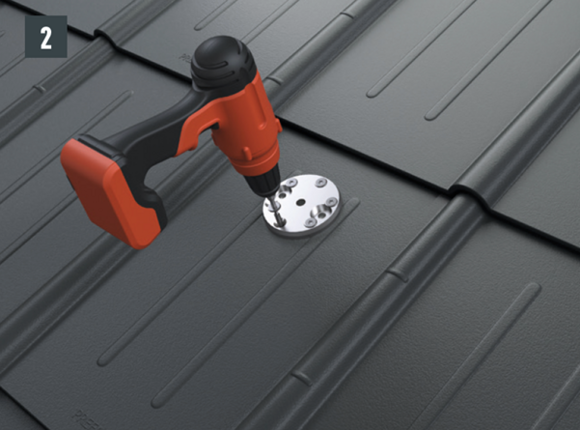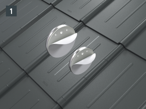 La profondeur de pénétration des vis de fixation d’origine dans la sous-construction porteuse (chevrons) doit être d’au moins 80 mm. Pour les losanges de toiture 29 × 29, les losanges de toiture 44 × 44 et les bardeaux de toiture, il est nécessaire d’installer une plaque de support.