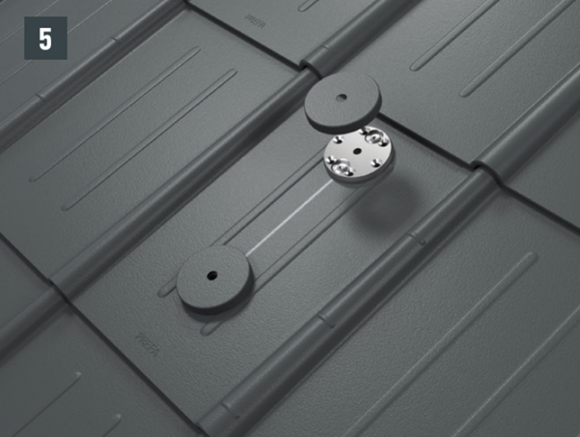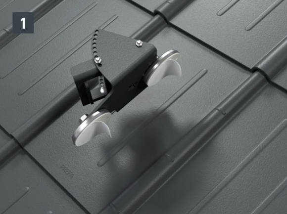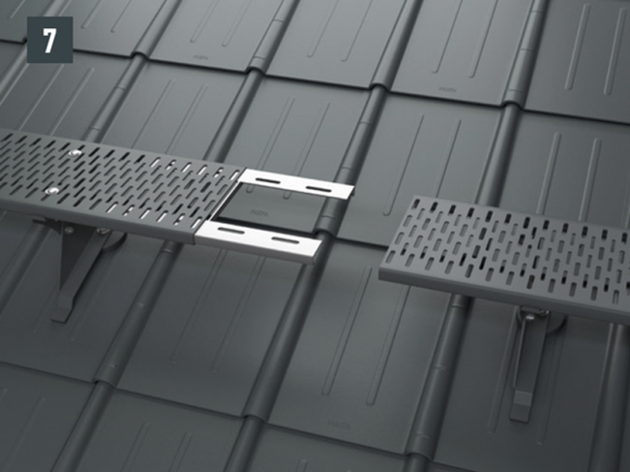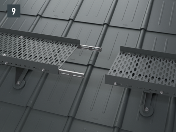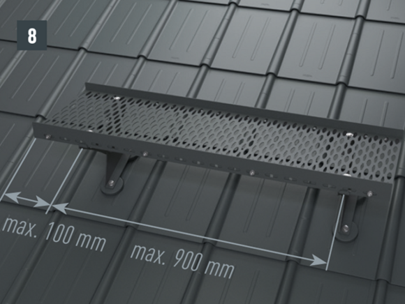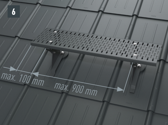 Les supports de chemin de circulation ne doivent être utilisés que pour permettre l’accès au toit et non comme point d’ancrage pour des équipements de protection individuelle ou pour le support de charges. Le support de chemin de circulation correspond à la norme EN 516, classe K1, type A et convient pour des pentes de toit comprises entre 12 et 55°.