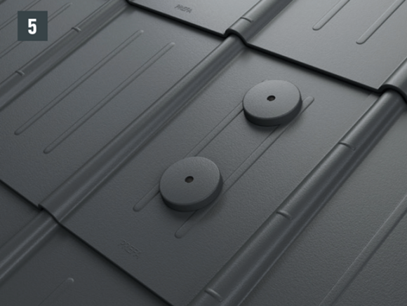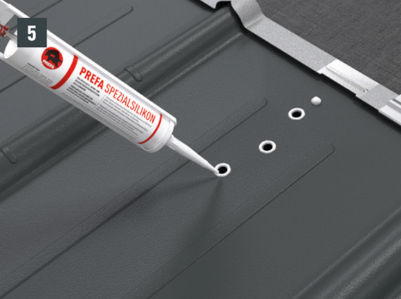 . La marche de toit ne doit pas être positionnée et fixée sur une agrafe ou sur une onde de la couverture de toit PREFA.