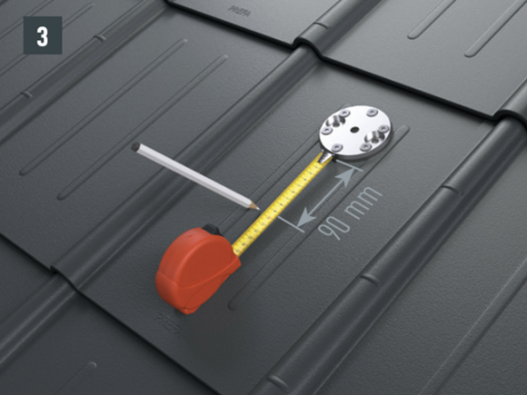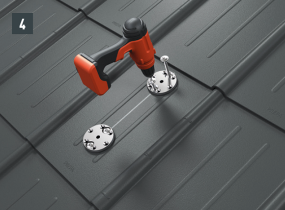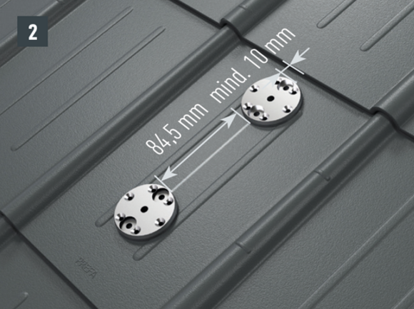 La platine ne doit pas être positionnée et fixée sur une agrafe ou sur une onde de la couverture PREFA. Il peut être nécessaire de monter une plaque de support (par ex. si une agrafe ou si une onde se trouve au niveau d’un chevron).