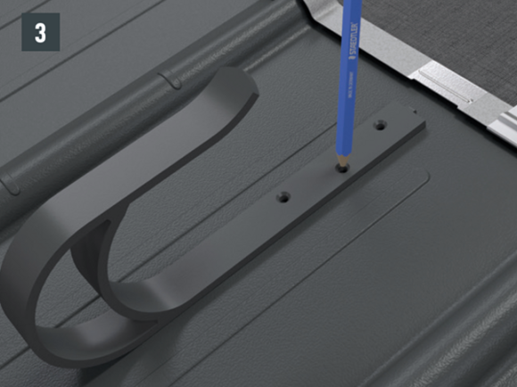 Avec les tuiles, les R.16 et les panneaux de toiture FX.12, il peut être nécessaire de monter une plaque de support (par ex. si une agrafe ou si une onde se trouve au niveau d’un chevron).
