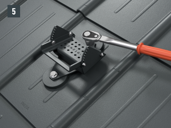 La marche de toit est un produit de construction en aluminium qui permet de marcher sur la toiture. Elle est fixée sur la structure porteuse d’un toit incliné et peut être utilisée pour réaliser l’inspection, l’entretien et la maintenance des installations situées au-dessus des surfaces de toit. La marche de toit répond à la norme EN 516, classe K1, et ne doit pas être utilisée comme point d’ancrage pour les équipements de protection individuelle. Convient aux pentes de toit comprises entre 12 et 60°.