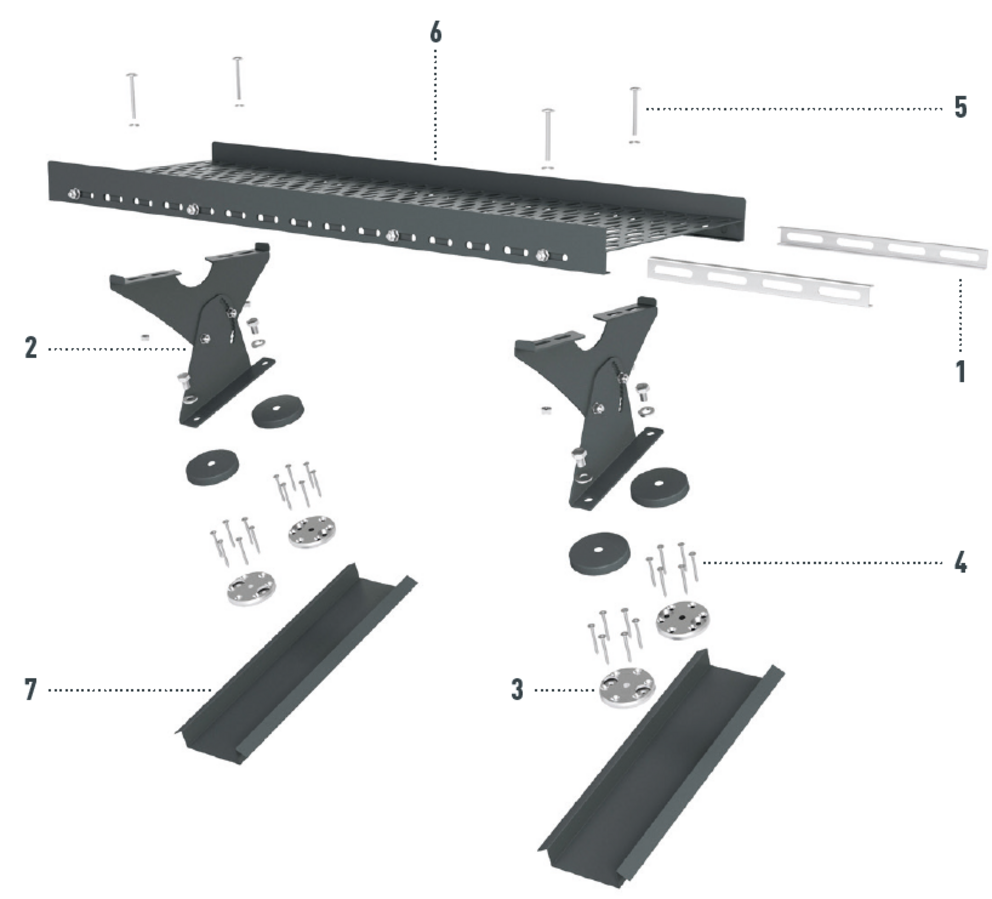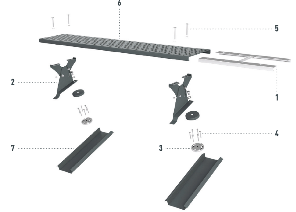 Les supports de chemin de circulation ne doivent être utilisés que pour permettre l’accès au toit et non comme point d’ancrage pour des équipements de protection individuelle ou pour le support de charges. Le support de chemin de circulation répond à la norme EN 516, classe K1, type B et convient pour des pentes de toit comprises entre 12 et 55°.