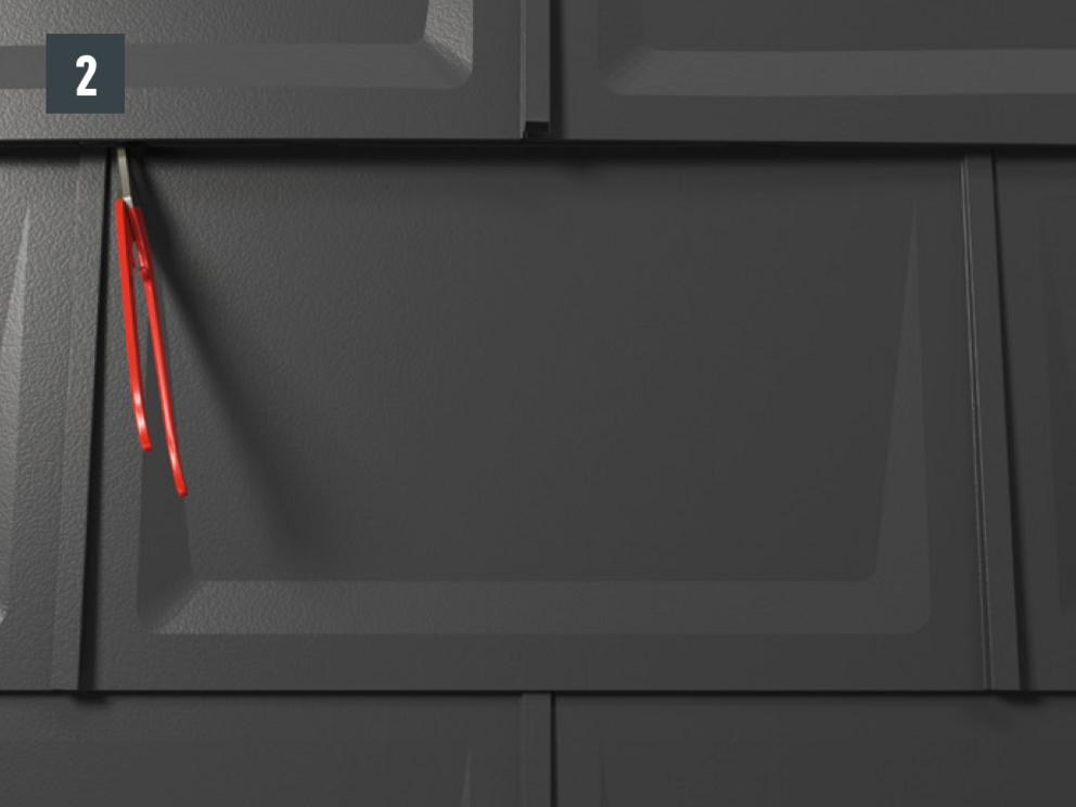 • Retirez la fixation et entaillez la patte de fixation brevetée supérieure (Fig. 2).