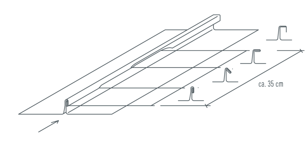 Les joints debout double agrafe et les joints debout angulaires peuvent être fermés à la main à l’aide d’une pince à sertir ou à la machine à l’aide d’une sertisseuse. Il convient notamment de faire attention aux points suivants lors de la fermeture des agrafes à la machine.
